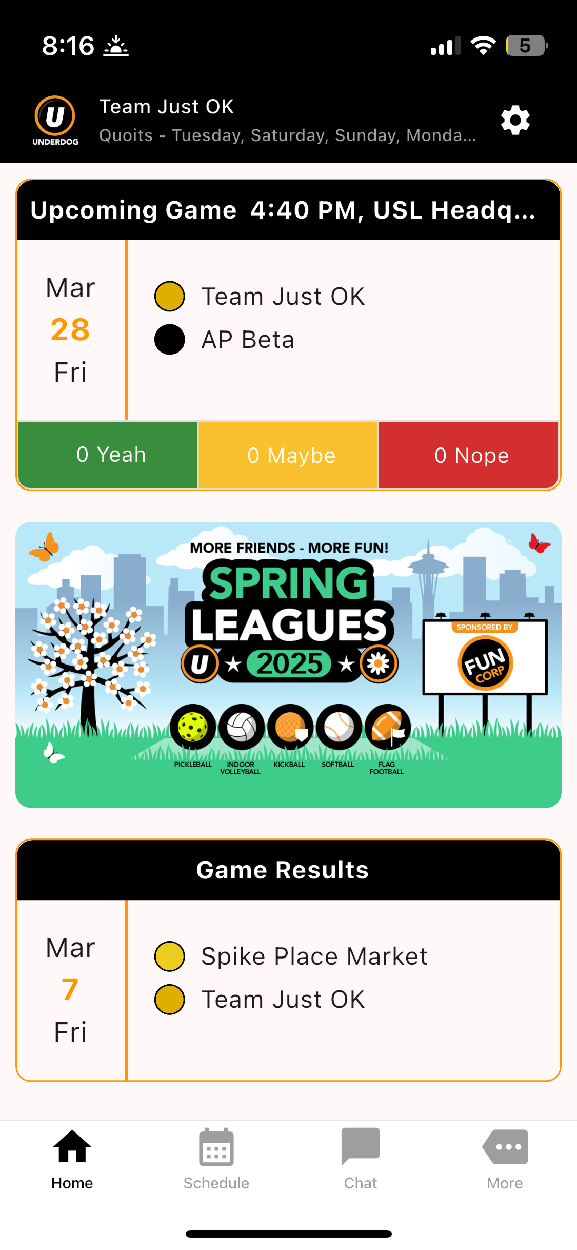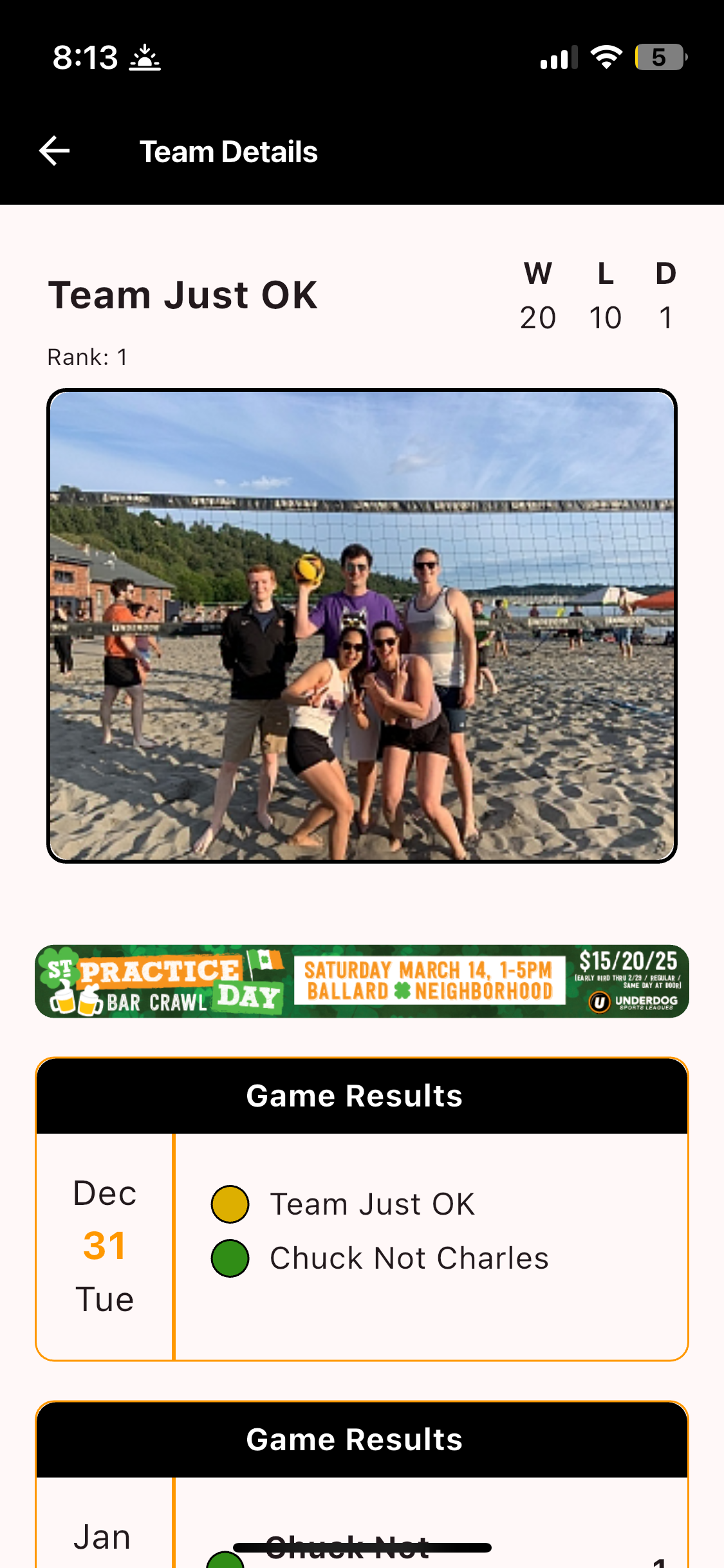 The app was an existing shell of a past league app without a UX Manager. I was brought in to overhaul the look and feel of the app to fit Underdog Seattle.
